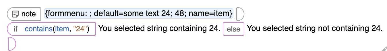 {if: contains(item, "24")}You selected string containing 24.{else}You selected string not containing 24.{endif}